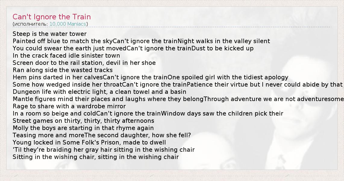 А как ты думаешь, о чем песня "Can't Ignore the Train" ?