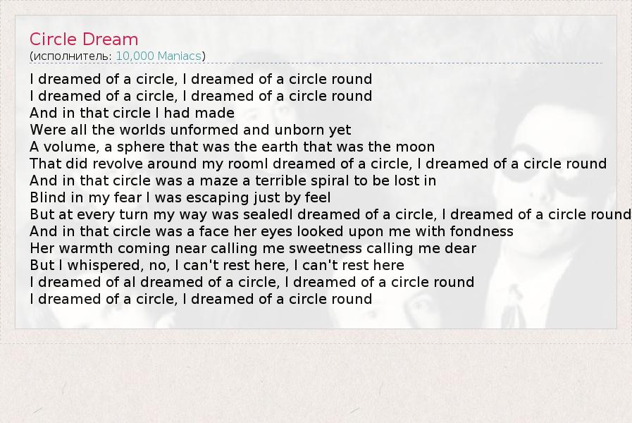 А как ты думаешь, о чем песня "Circle Dream" ?