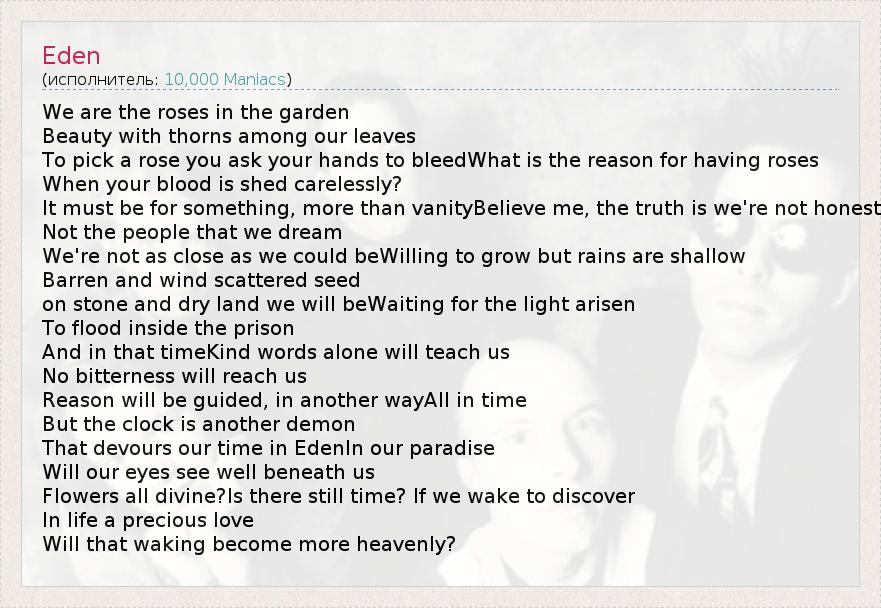 А как ты думаешь, о чем песня "Eden" ?