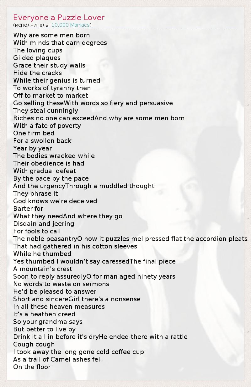 А как ты думаешь, о чем песня "Everyone a Puzzle Lover" ?