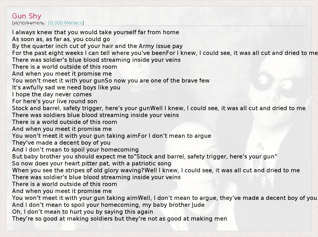 А как ты думаешь, о чем песня "Gun Shy" ?