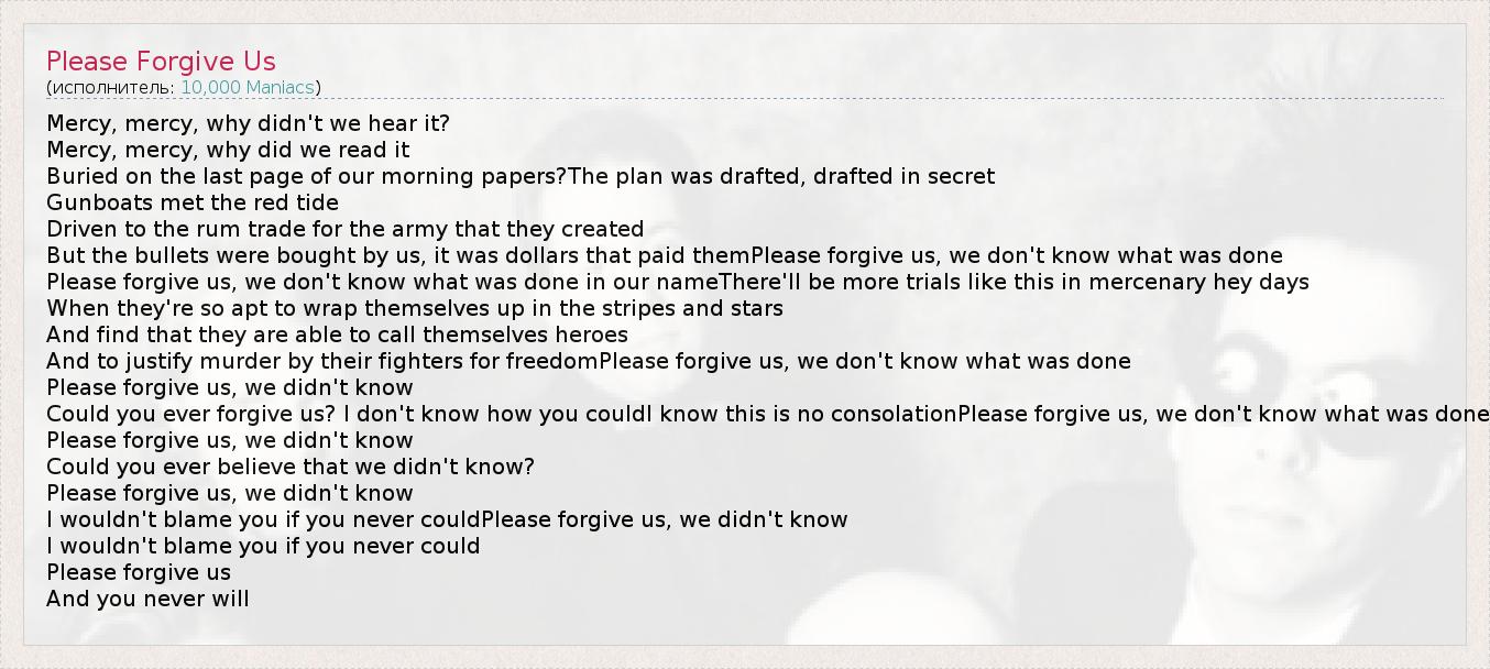 А как ты думаешь, о чем песня "Please Forgive Us" ?