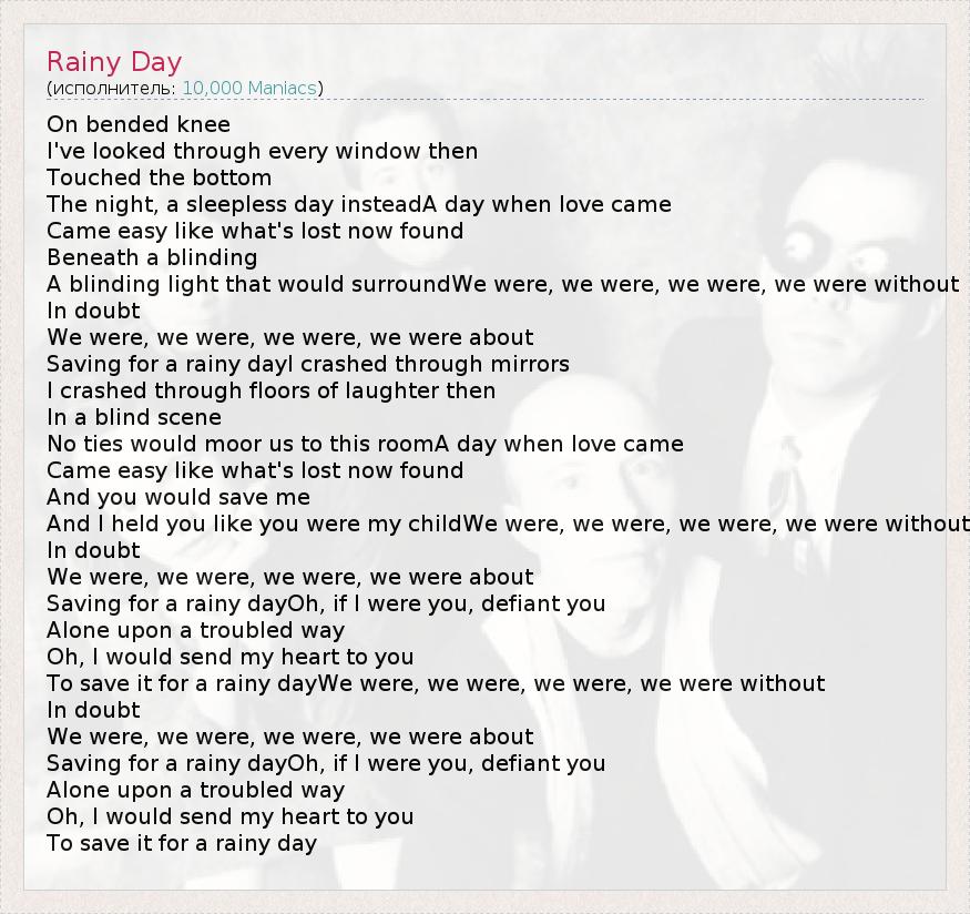А как ты думаешь, о чем песня "Rainy Day" ?