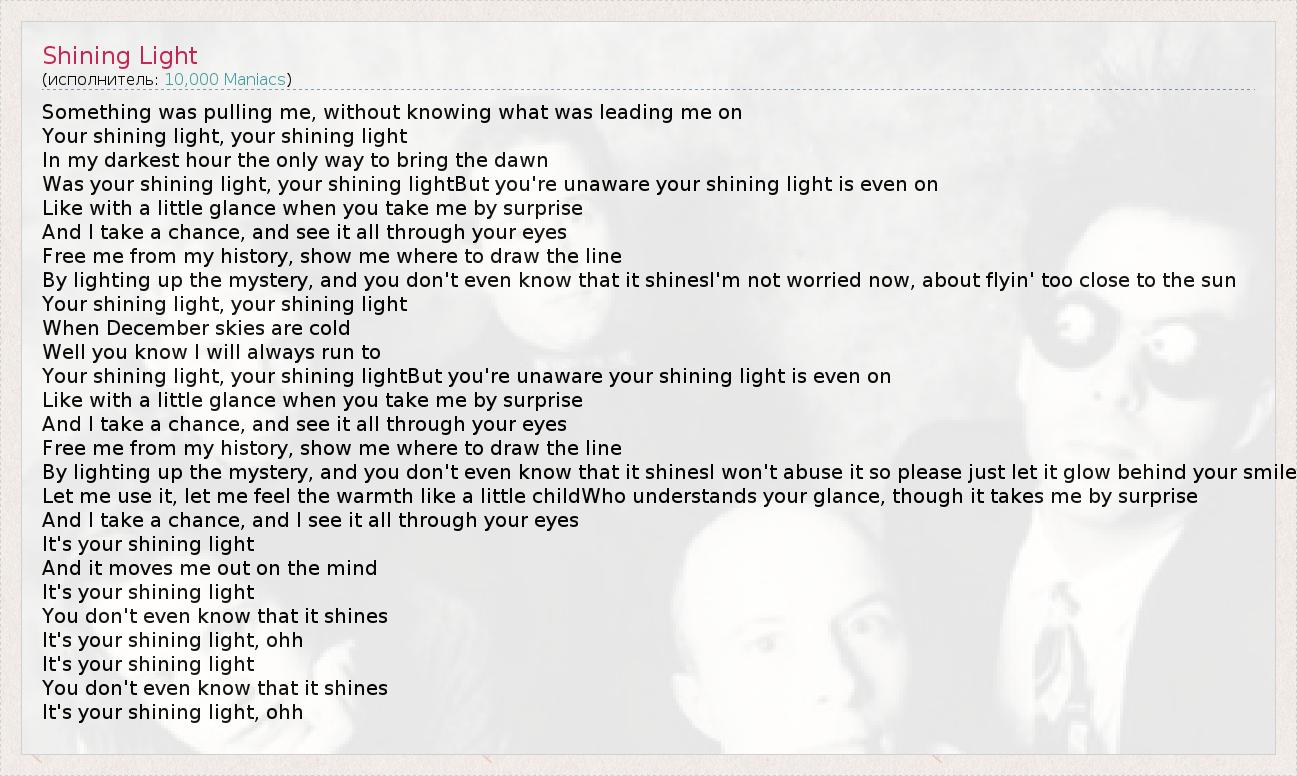 А как ты думаешь, о чем песня "Shining Light" ?