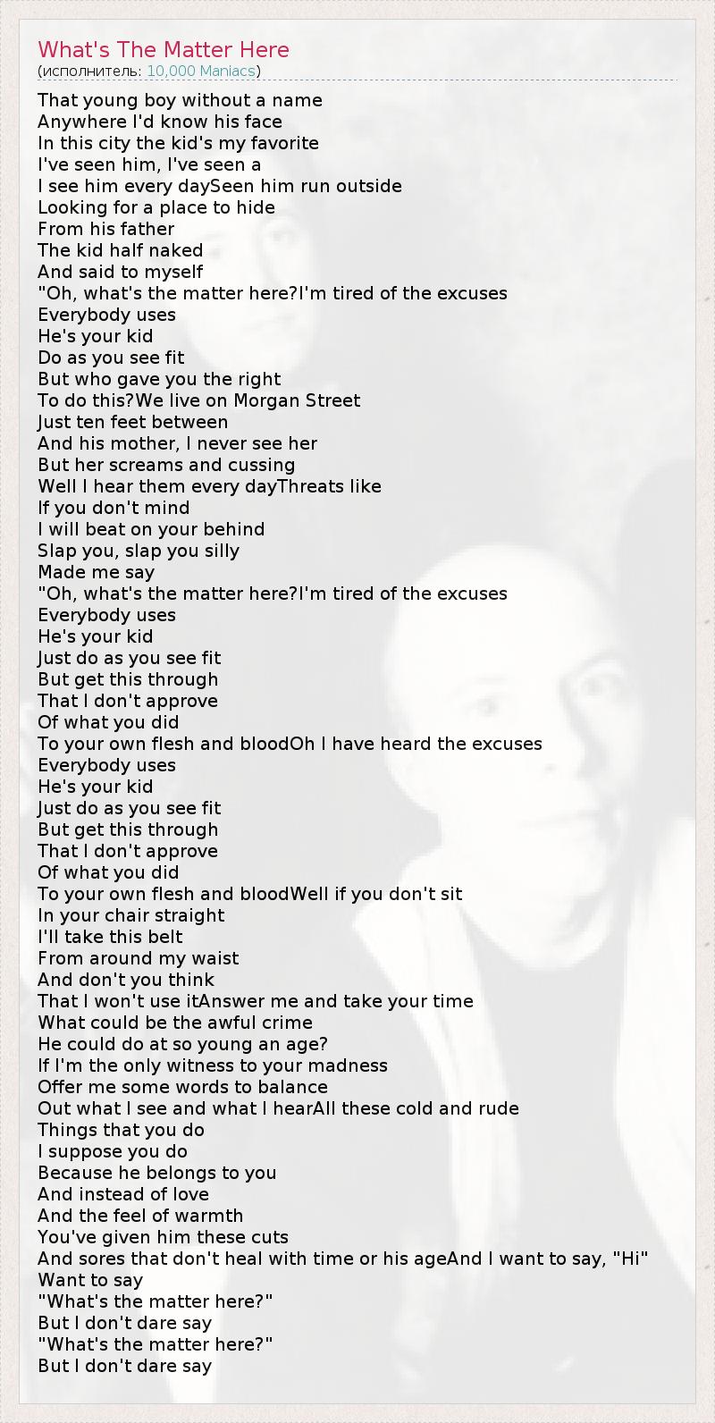 А как ты думаешь, о чем песня "What's The Matter Here" ?
