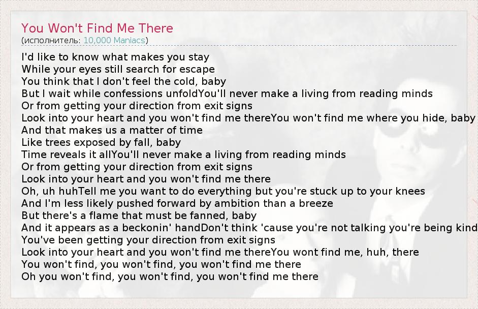 А как ты думаешь, о чем песня "You Won't Find Me There" ?