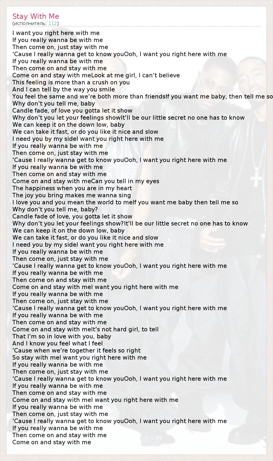 Come on and stay with meI want you right here with me