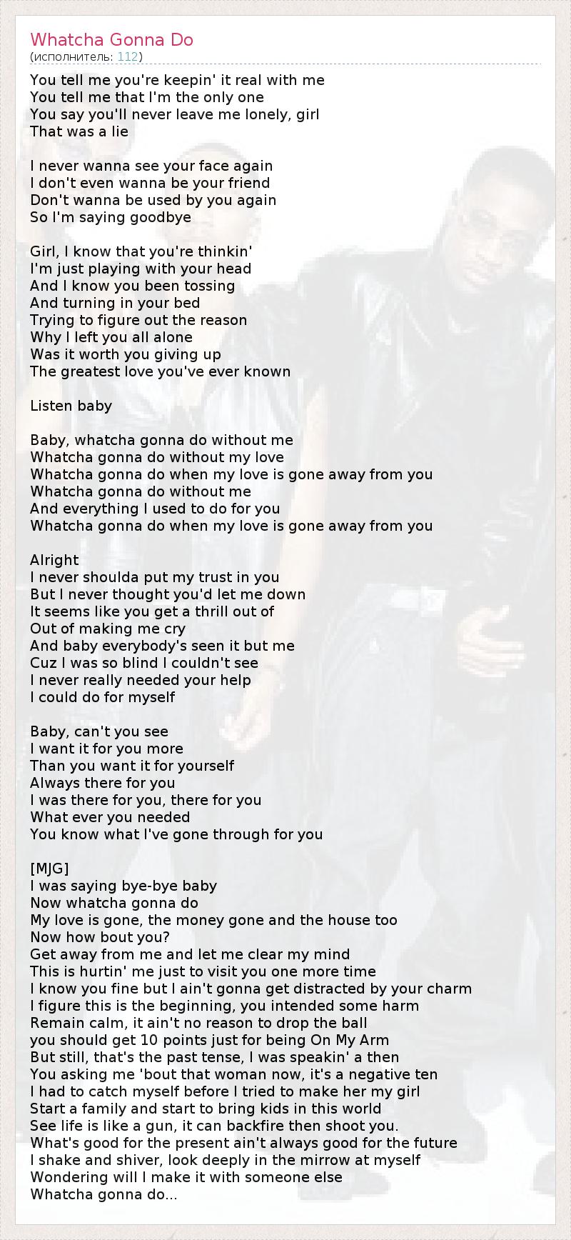 А как ты думаешь, о чем песня "Whatcha Gonna Do" ?