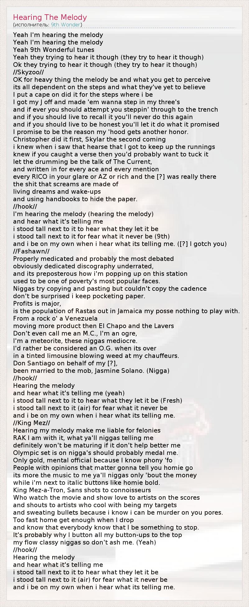 А как ты думаешь, о чем песня "Hearing The Melody" ?