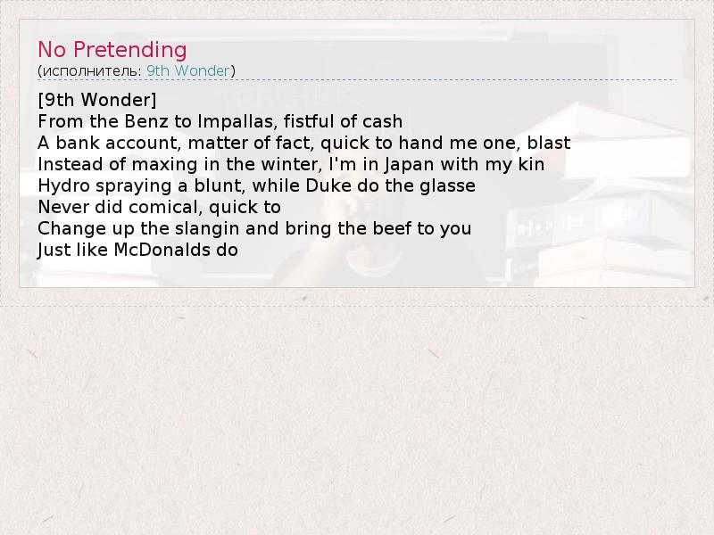 А как ты думаешь, о чем песня "No Pretending" ?