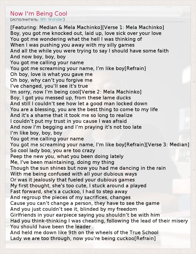 А как ты думаешь, о чем песня "Now I'm Being Cool" ?