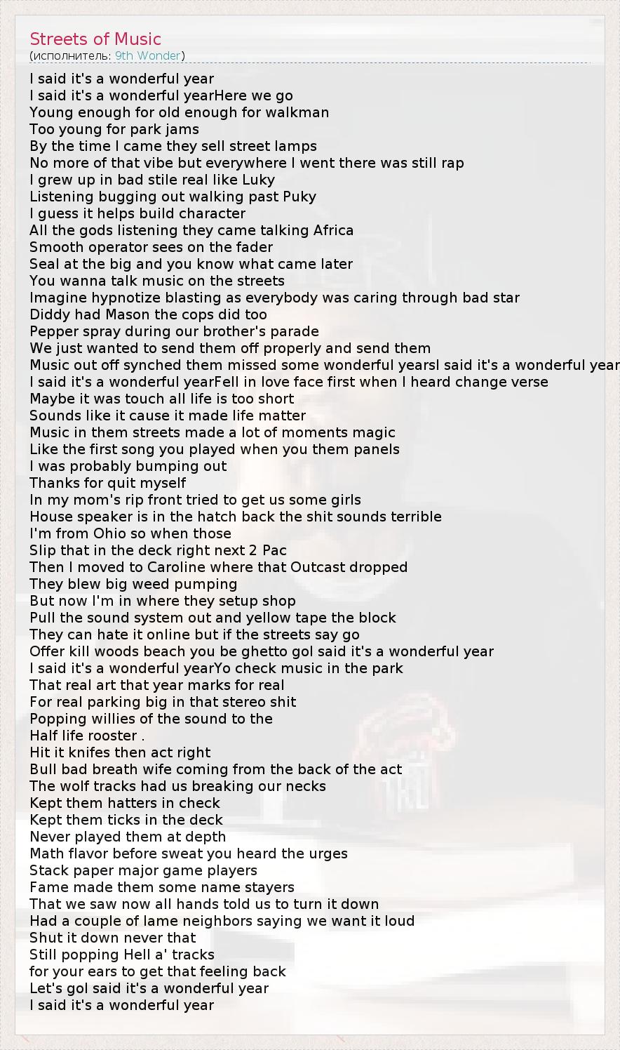 А как ты думаешь, о чем песня "Streets of Music" ?
