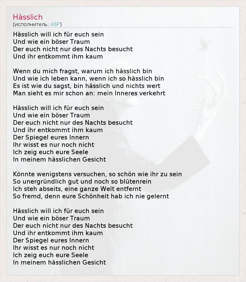 А как ты думаешь, о чем песня "Hässlich" ?