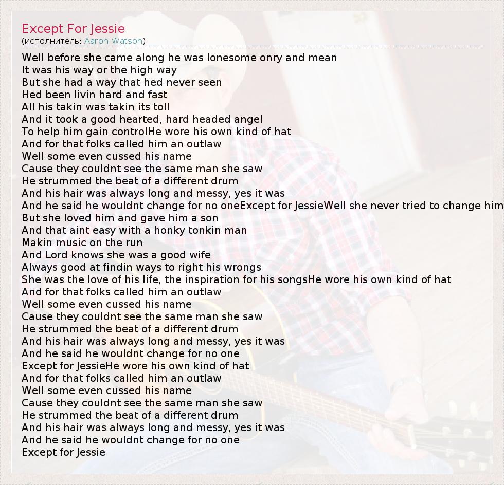 А как ты думаешь, о чем песня "Except For Jessie" ?