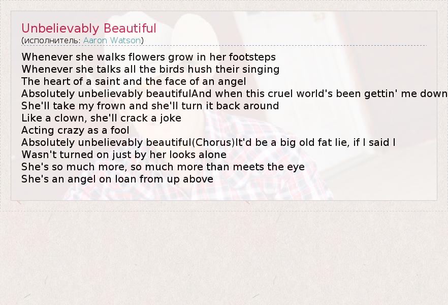 А как ты думаешь, о чем песня "Unbelievably Beautiful" ?