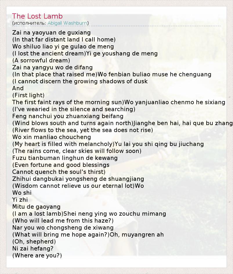 А как ты думаешь, о чем песня "The Lost Lamb" ?