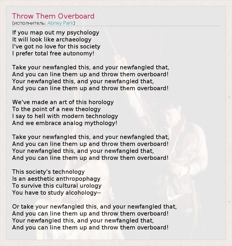 А как ты думаешь, о чем песня "Throw Them Overboard" ?
