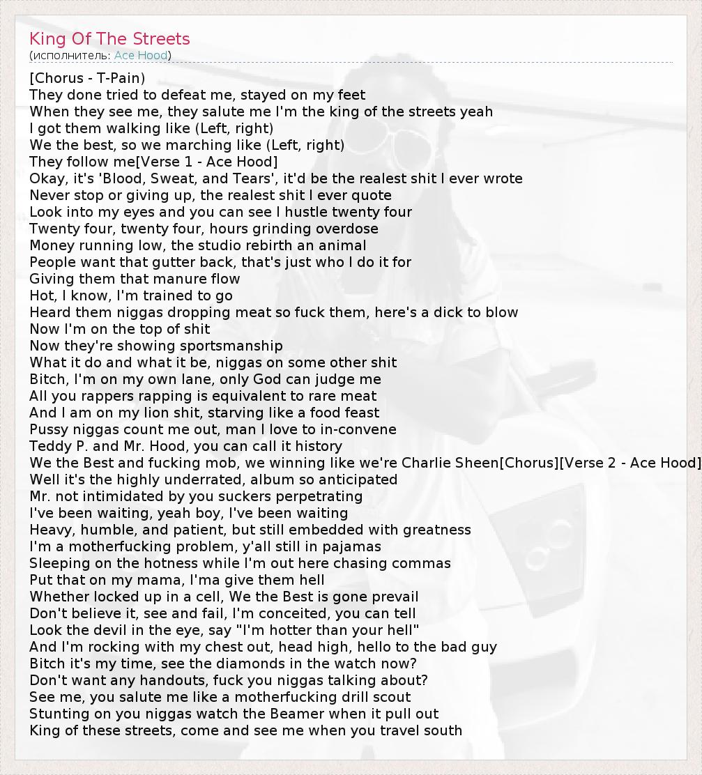 А как ты думаешь, о чем песня "King Of The Streets" ?