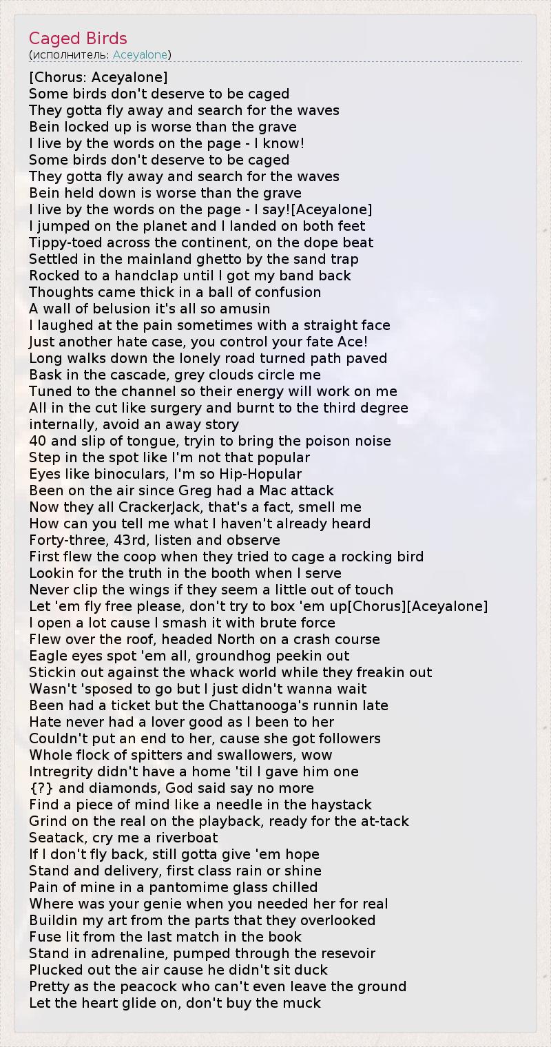 А как ты думаешь, о чем песня "Caged Birds" ?