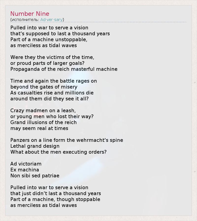 А как ты думаешь, о чем песня "Number Nine" ?