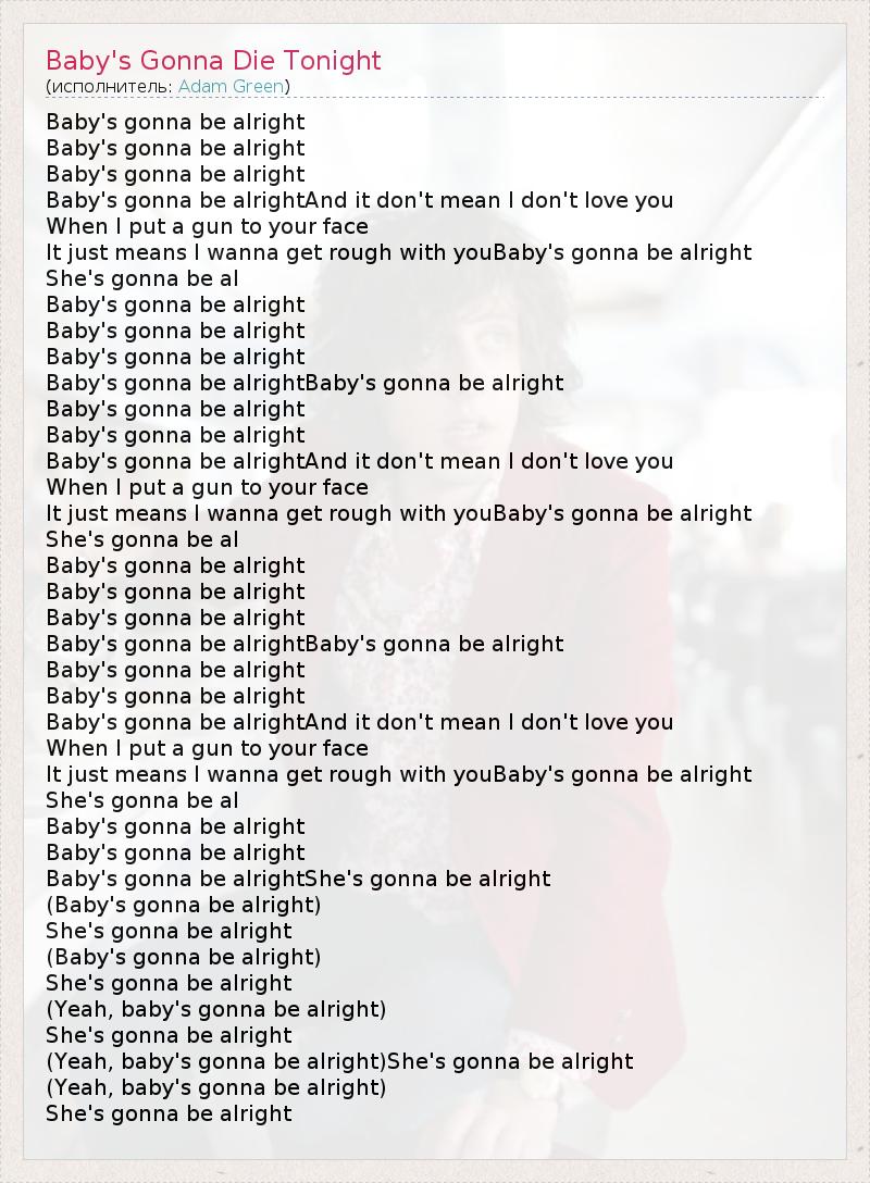 ГлавнаяИсполнителиAdam GreenBaby's Gonna Die Tonight