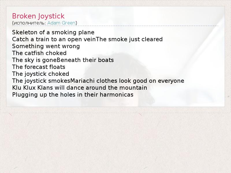 А как ты думаешь, о чем песня "Broken Joystick" ?