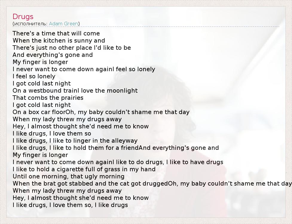 Это интересно:Adam Green. Основатель про-фолк группы The Moldy Peaches, ныне являющийся сольным артистом. Вскоре после её развала - один из идеологов ещё недавно новомодного (в начале 2000-ых) движения антифолк. Эдакой альтернативы всей этой около-экономической шумихе. Мягкого, без противодействия, противопоставления почти субкультуры реальности топ-менеджеров, кредитных линий, дорожных чеков, fast-food и fast-art (fast-movie,... продолжение