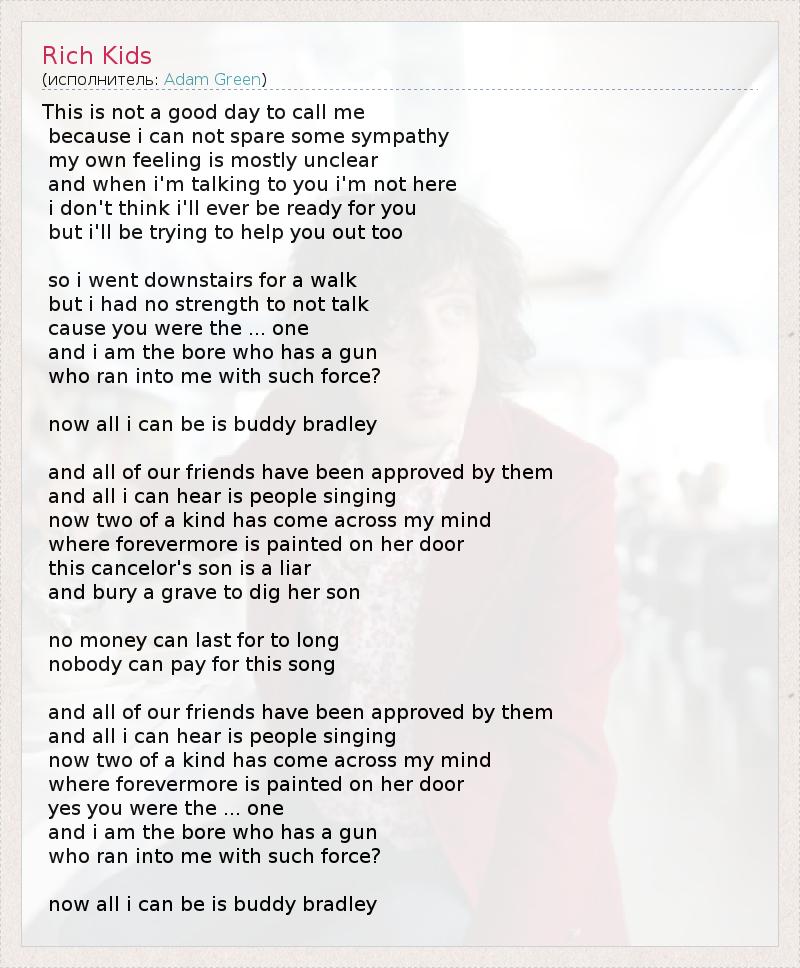 А как ты думаешь, о чем песня "Rich Kids" ?