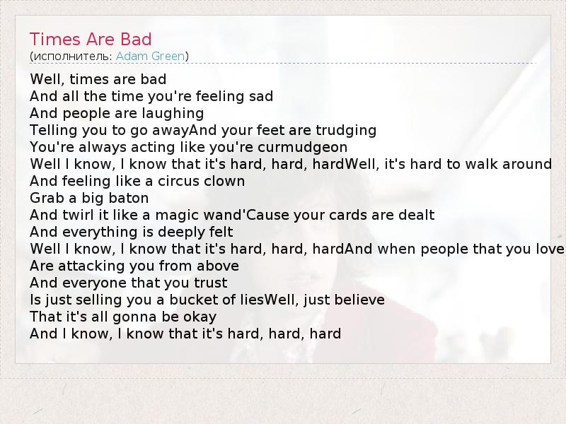 А как ты думаешь, о чем песня "Times Are Bad" ?