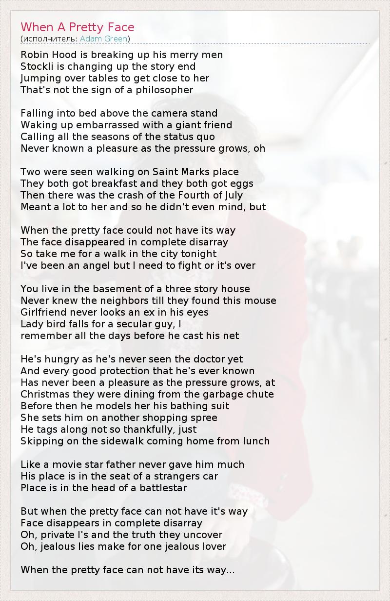 А как ты думаешь, о чем песня "When A Pretty Face" ?