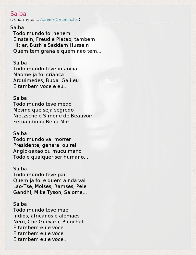 Это интересно:Adriana Calcanhotto (ранее Calcanhoto) - певица и композитор в жанре MPB (Music Popular Brazileiro - бразильская популярная музыка), проявила себя в 1990 году, который стал для нее началом большого успеха и помог вновь привлечь музыку Бразилии в мировые хит-парады. На рубеже нового тысячелетия Адриана пережила взлет своей карьеры, который продолжается и по сей день.Дискография:Enguiço (1990)Senhas (1992)A Fábrica do Poema... продолжение