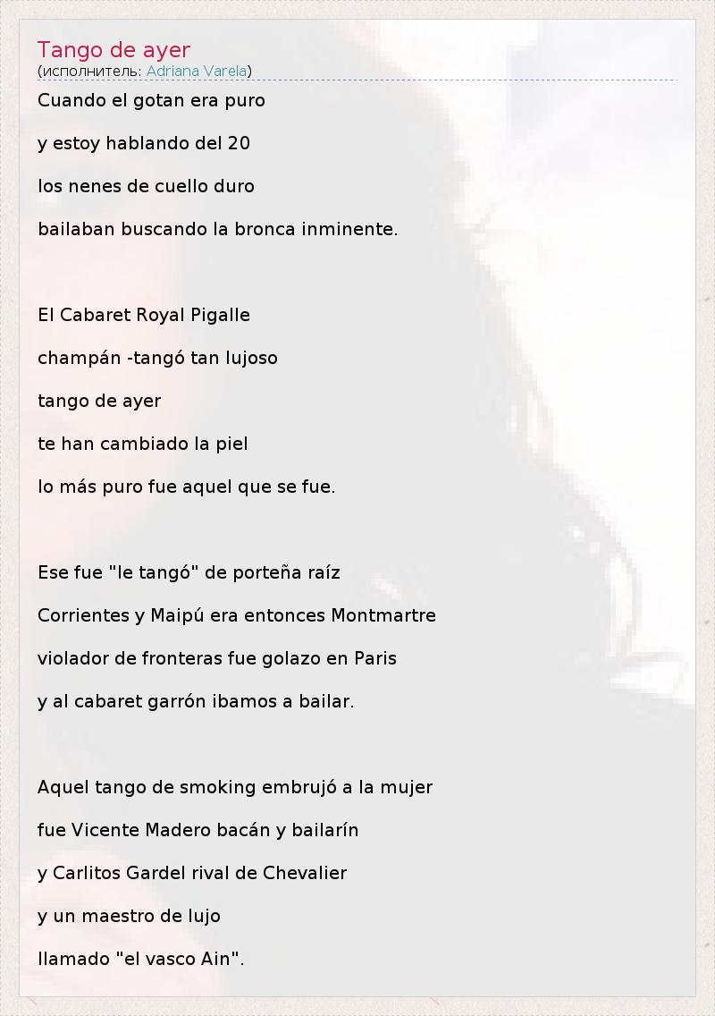 А как ты думаешь, о чем песня "Tango de ayer" ?