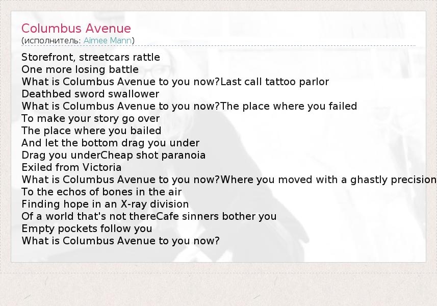 А как ты думаешь, о чем песня "Columbus Avenue" ?