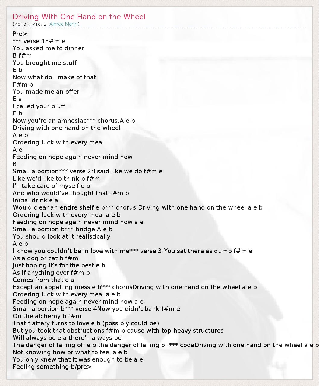 ГлавнаяИсполнителиAimee MannDriving With One Hand on the Wheel