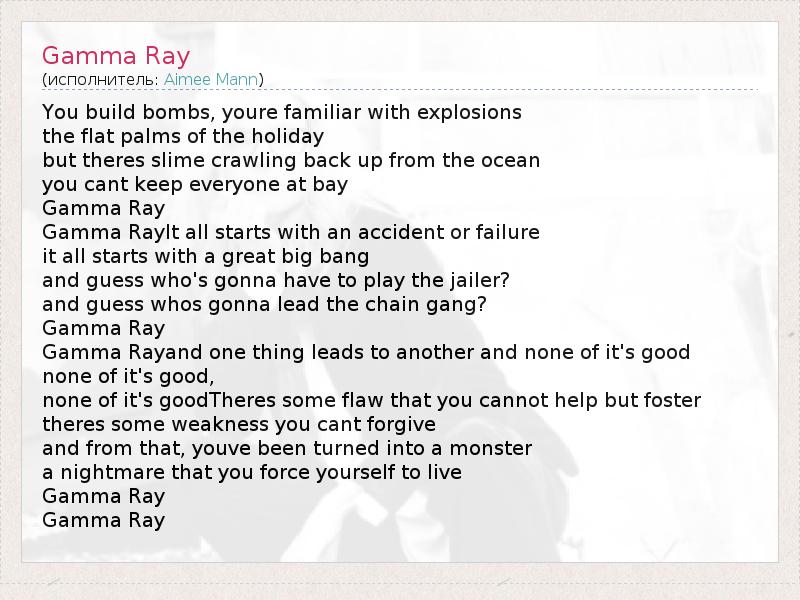 А как ты думаешь, о чем песня "Gamma Ray" ?