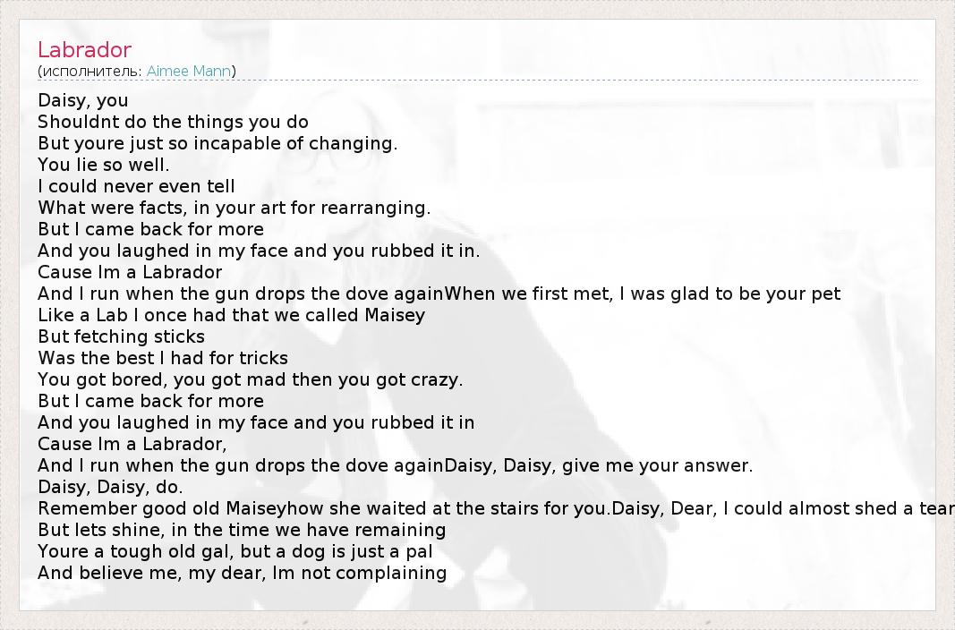 А как ты думаешь, о чем песня "Labrador" ?