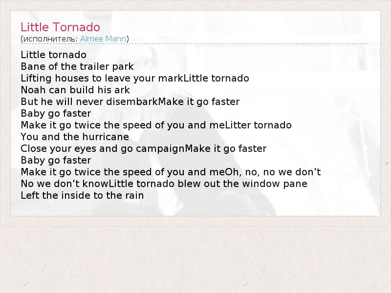 А как ты думаешь, о чем песня "Little Tornado" ?