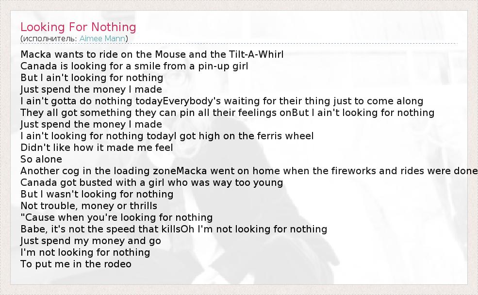 А как ты думаешь, о чем песня "Looking For Nothing" ?