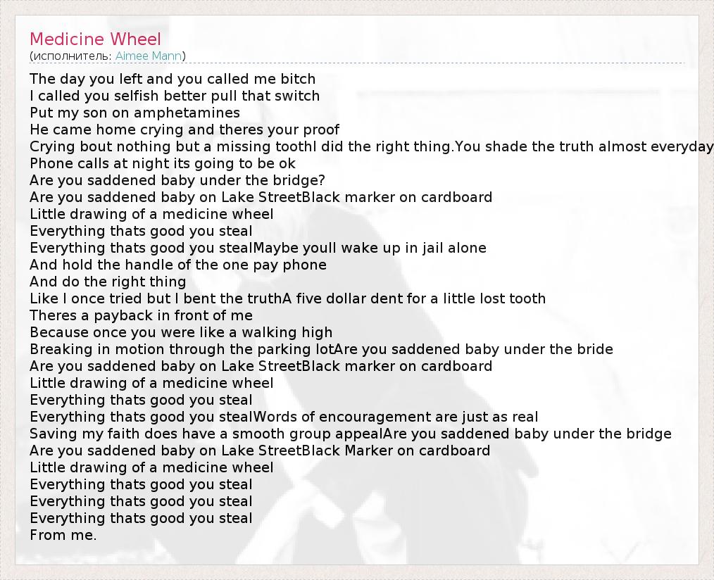 А как ты думаешь, о чем песня "Medicine Wheel" ?