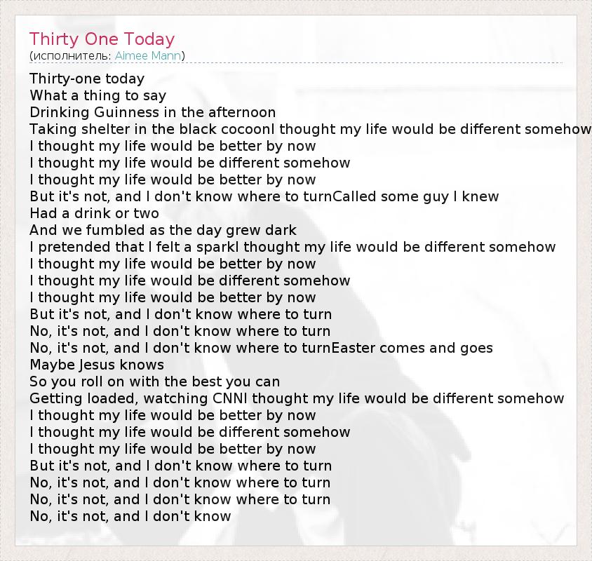 А как ты думаешь, о чем песня "Thirty One Today" ?