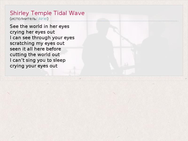 ГлавнаяИсполнителиAirielShirley Temple Tidal Wave