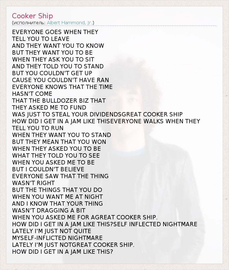 А как ты думаешь, о чем песня "Cooker Ship" ?