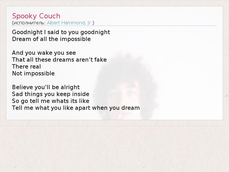 А как ты думаешь, о чем песня "Spooky Couch" ?