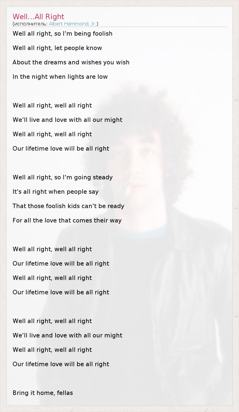 А как ты думаешь, о чем песня "Well...All Right" ?