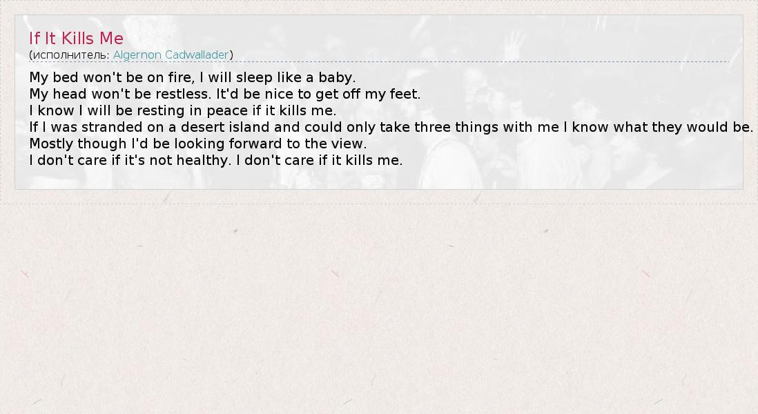 А как ты думаешь, о чем песня "If It Kills Me" ?
