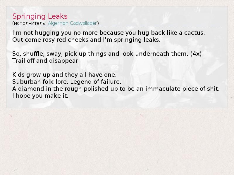 А как ты думаешь, о чем песня "Springing Leaks" ?