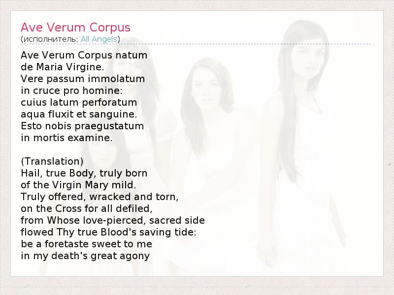 А как ты думаешь, о чем песня "Ave Verum Corpus" ?