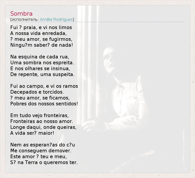 Это интересно:Амалия Родригес (порт. Amália da Piedade Rebordão Rodrigues, 1 июля (по другим сведениям — 23 июля} 1920, Лиссабон — 6 октября 1999, там же) — португальская певица, «королева фаду» (fado), «голос Португалии».Родилась в столичном квартале Алкантара, в бедной многодетной семье, пятым ребёнком (из девяти), воспитывалась бабушкой по материнской линии. Дебютировала в 1938, в 1940 вышла замуж... продолжение