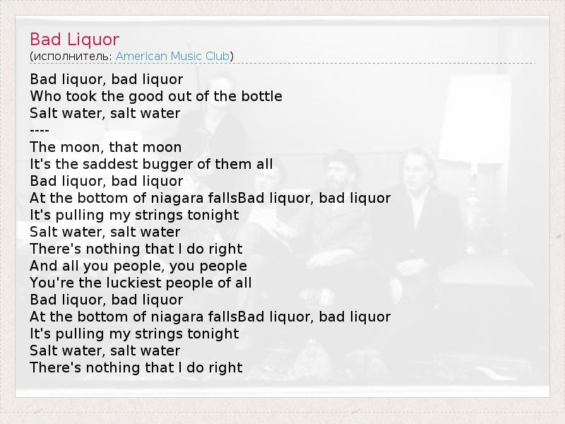 А как ты думаешь, о чем песня "Bad Liquor" ?