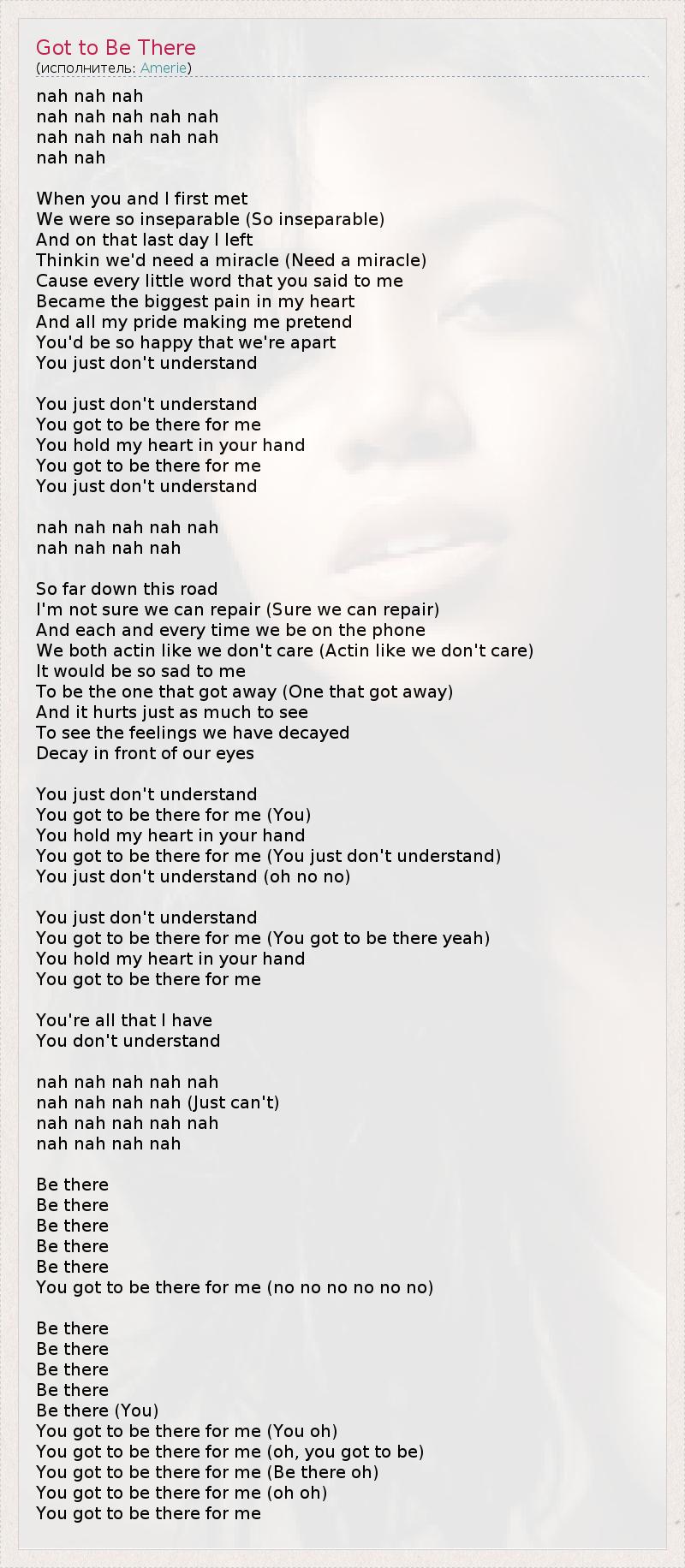You got to be there for me (You just don't understand)